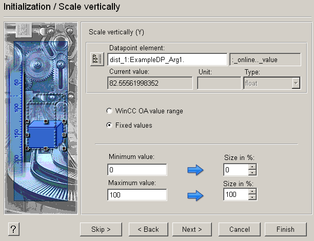 If you want to scale the object independently of the WinCC OA range, you just have to enter the related scaling factor in per cent.