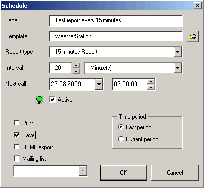 In the Quick selection facility and the Schedule option, you can select the time range when configuring automatic report generation. Reports can be generated automatically for a period already completed or for a period still in progress.