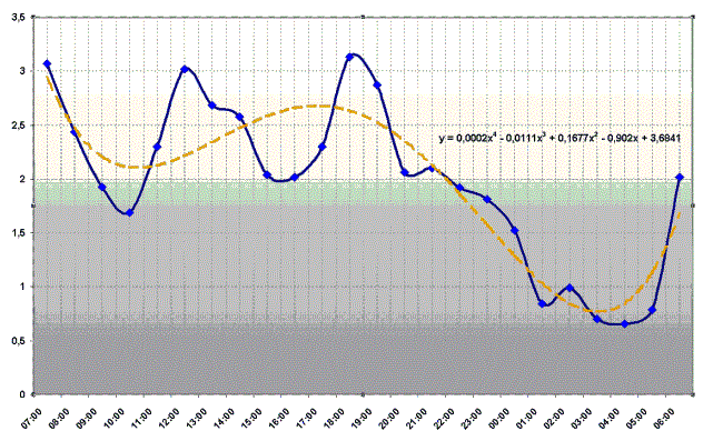 The screenshot Water supply report - trend line shows a template file "water_supply.xlt" containing a trend line and its mathematical approximation as a fourth order polynomial (best fit). This type of "trend line" can be calculated in Excel. You do not have to display the automatically calculated formula - it is optional!