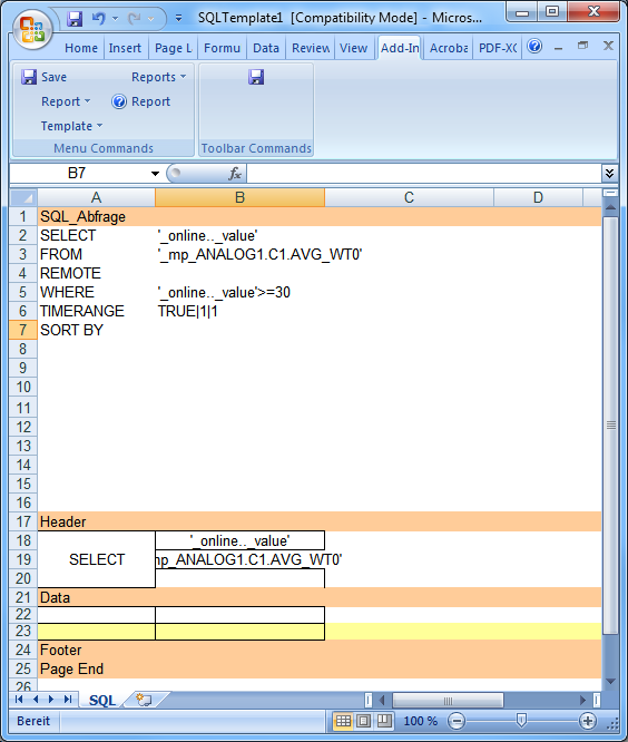 Your SQL template has to look as follows. Save your result as SQLTemperature.xls in the directory Report.