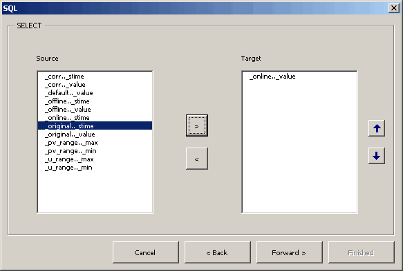 Select _online.._value from Source and click ">" to move the value to the Target. Click on Forward.