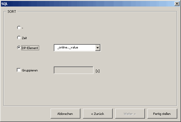 Note that alias names cannot be used for SQL queries with Excel Report. Alias names can, however, be used for direct queries via the History Database. See chapter Adding a data point.