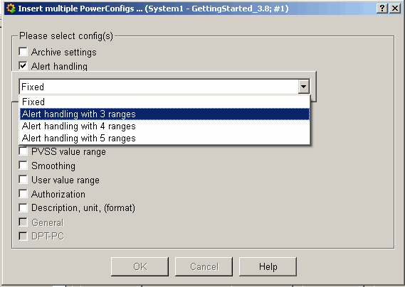You can also define the alert handling - make the settings as shown in the figure above. By selecting an alert handling with three ranges, it's possible to set different limit values for higher and lower alerts for each datapoint later.