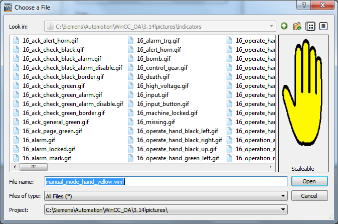 Navigate to the file /Indicators/manual_mode_hand_yellow.wmf and click Open - the selected graphic will be added as rectangle.