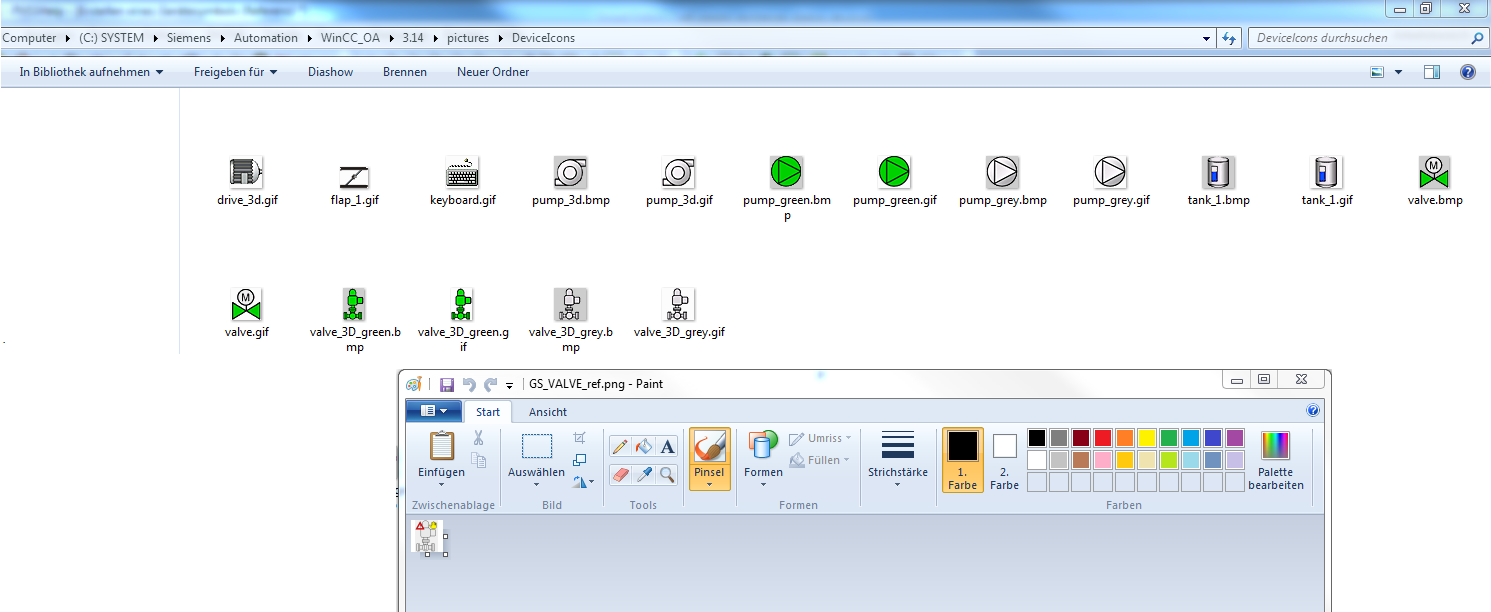 Furthermore, WinCC OA provides ready images that can be embedded in the process view. You can create optically appealing visualizations without investing much time. In order to illustrate also this possibility, the device symbol for the valve will be created using an alternative option.