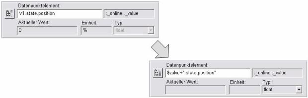 Everywhere an absolute datapoint identifier was used, it's not necessary to specify which device instance should be used. Instead of the datapoint name, enter a placeholder, the so-called $ parameter.