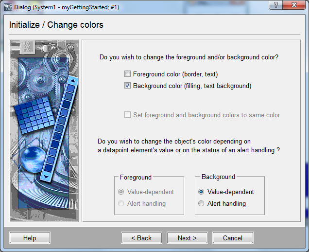 In the next step activate the check box for "background color" (only this can be changed for the added WMF graphics) and enter "value dependent". Confirm this step withNext >.