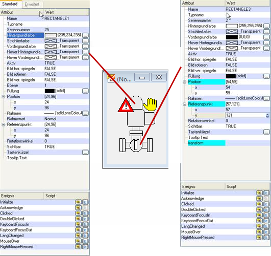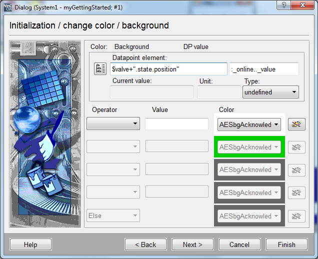 Select the rectangle with the valve graphic and open the wizard for the simple configuration in the property sheet for "initialize".