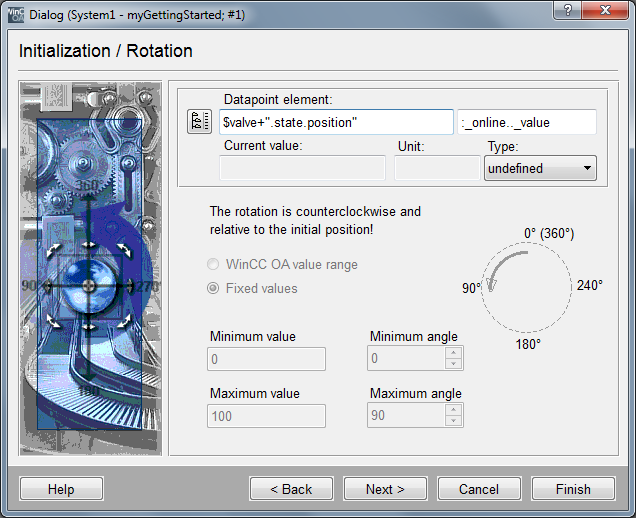 Configure the associated rotation angle from 0° to 90° and complete the input with "Finish".