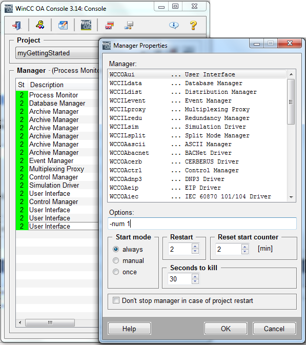 The communication between control station and basic automation (PLC, DDC, RTU) is executed in WinCC OA through own managers, the so-called drivers. Depending on the communication protocol and the used bus physics, specific drivers are used.