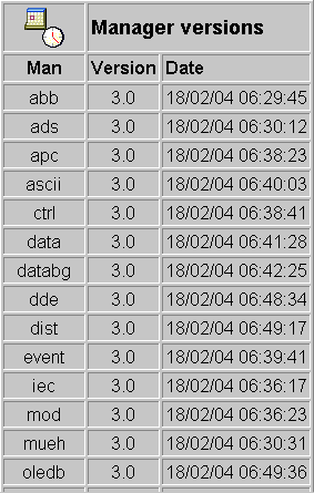 Displays all available WinCC OA managers with version number and date of creation.