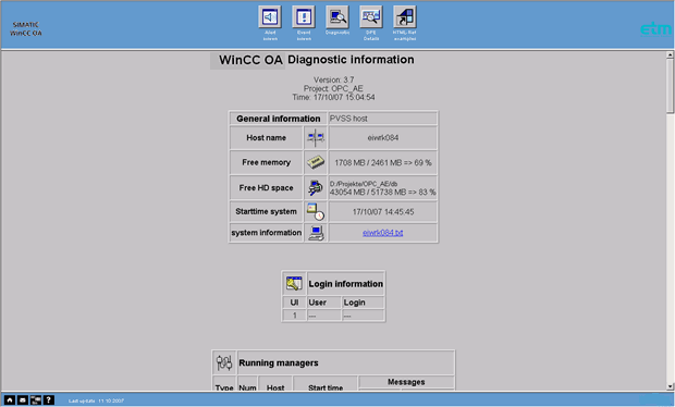 This HTML page is used for remote diagnostics of the WinCC OA system.