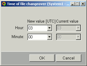 The time is the "local" time. The time is converted internally to the UTC time and the file sets of the archive contain the UTC file change time in the file name. On this tab, you define the times at which archive records are automatically changed(a new archive record will be started), saved (archive record will be backed up) or deleted. See Swap out/backup archives. If you select the type daily, you can additionally choose how many times the archive will be changed per day (1-24).
