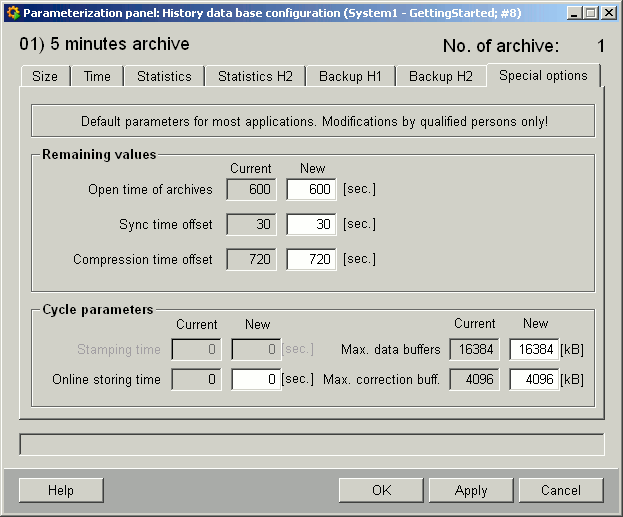 - Max. correction buff. : How many KB should be left for correction values as buffer (main memory), (default 4096 kB, 0 = unlimited). These values become active after confirmation (Apply) (without change of an archive record).