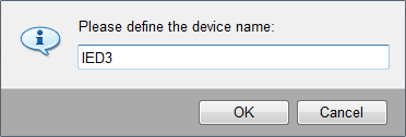 A datapoint of the internal datapoint type _IEC61850_IED with the prefix "_" (e.g.: _IED3) is created after clicking on the OK button. In case of a redundant system, a datapoint with the same device name and suffix "_2" (e.g.: _IED3_2) is created automatically.
