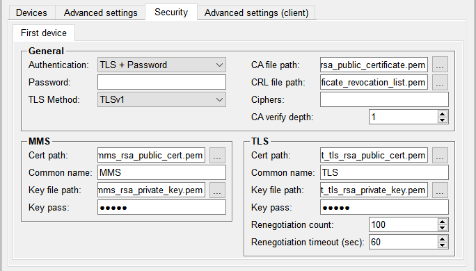 The Certificate for the MMS encryption. Can be selected using the button next to the field.