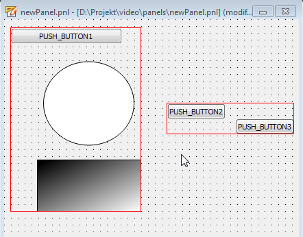 - Select the layout that contains the two push buttons (SHIFT + click on one of the buttons) and select the other layout by CTRL + SHIFT + one of the objects (e.g. the rectangle).