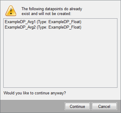 If you click on Continue all datapoints with unique names are created.
