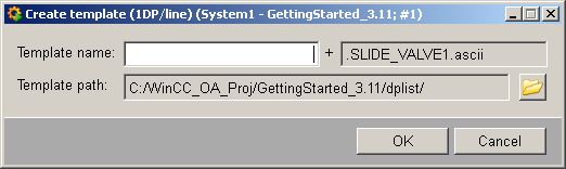Under Template name, enter the name that you want to for the file. The name of the ASCII file is finally composed of: ”Template name” + ”datapoint type name” in the format V 3. The naming of format V 4 is composed of defined template names. The extension of the file in both formats is .ascii.