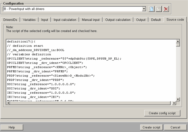 is displayed on this tab. Clicking on the button Create config script updates the