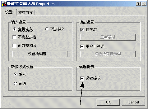 Activate the check box in the group at the bottom on the right (arrow). This will simplify the input of Chinese characters.