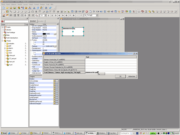 Start WinCC OA with a multilingual project (for example, German/de_AT.iso88591 and Simplified Chinese/zh_CN.gb2312-1). Insert a text field in GEDI, select Chinese language and activate Chinese input in the taskbar. Start typing and select a word from the dialog window as before. Accept the word by pressing the Enter key.