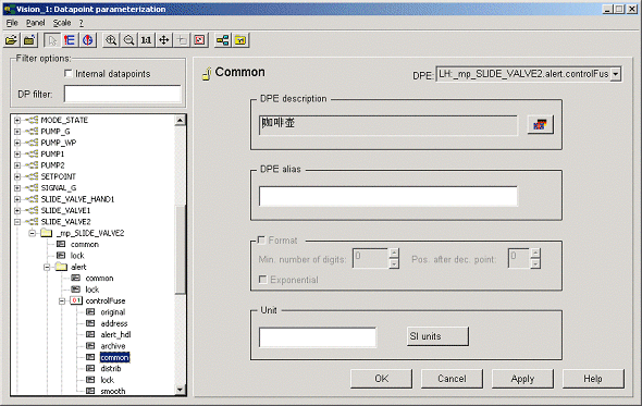 Save the panel and start a UI with the option -lang zh_CN.gb2312-1. This opens the following panel. The Chinese text is visible in VISION.
