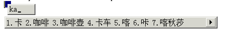 In the example, when typing "ka", you see a choice of possible words. Click the third choice and you have entered the Chinese word for "coffee pot".