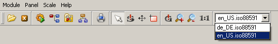After starting a user interface a combo box that allows selecting a language is shown in the tool bar. However, in contrast to the function switchLang(), switching the language via this combo box does not change the local settings, for example, the time and date format, display format of float variables etc.