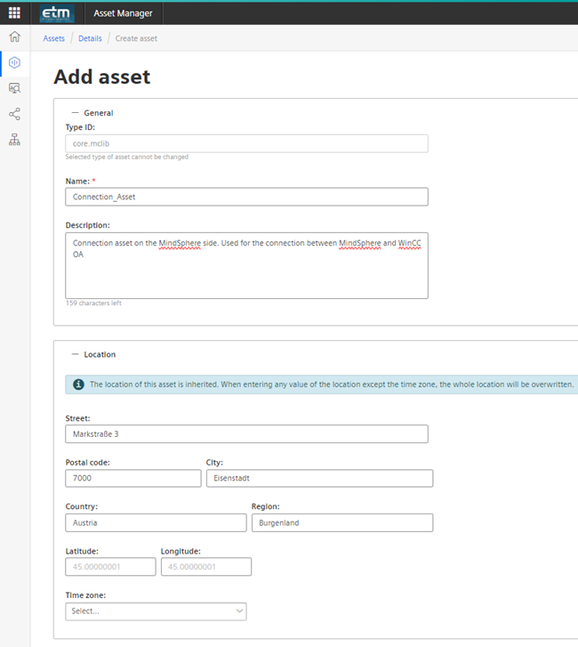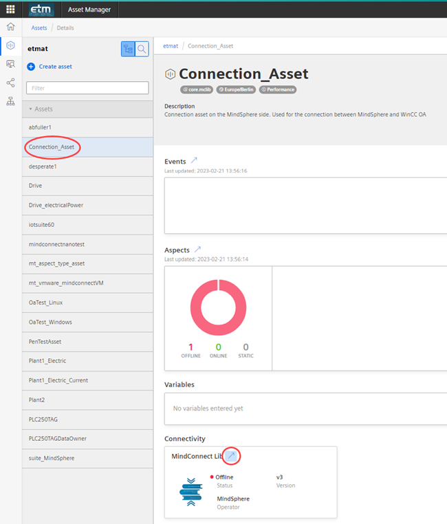 In order to use WinCC OA together with Insights Hub, create an asset of type MindConnectLib on the Insights Hub server-side.