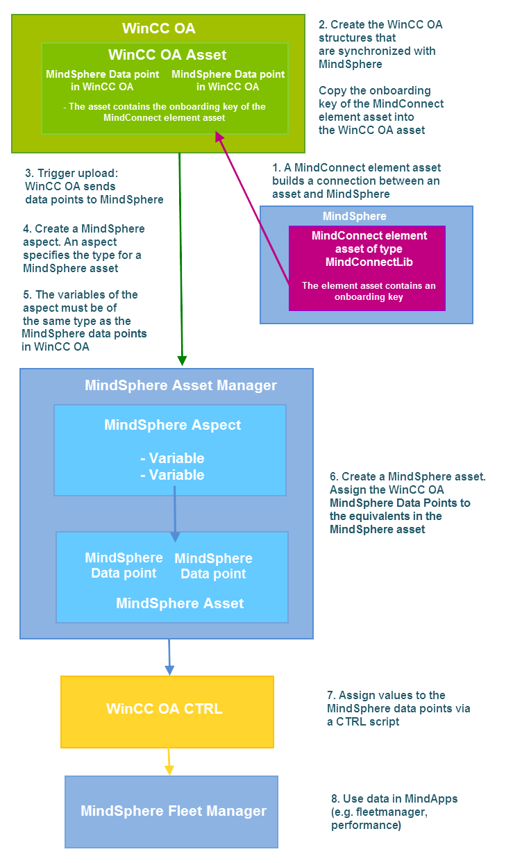 This chapter demonstrates the data transfer from WinCC OA to Insights Hub with the help of an image.