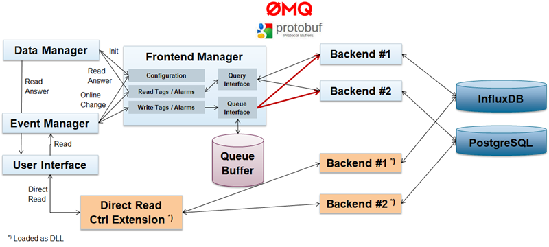 - Storage of values and alerts*) in multiple DBs / backends possible. See chapters Configuration - Backend and Configuration - Backend Profile