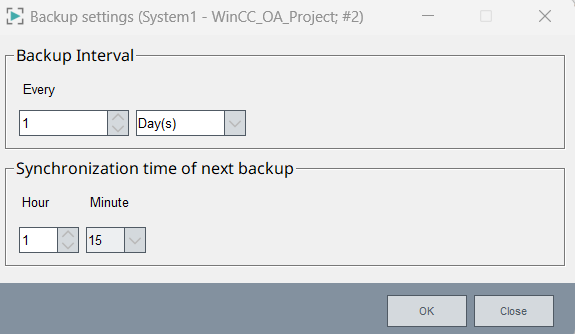Note:The entry of this field cannot be edited directly. Changes can be done via the "Backup interval " option - see above. Note also that the backup will be performed in a time window between the time shown and 30 seconds.Note: