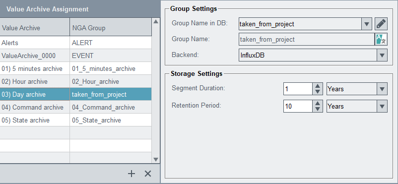 - The segment duration and retention period are taken from the settings of the value archive 3.