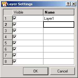 The list in the Layers window shows what layers in the Panel Window are visible or invisible. You can set a layer visible or invisible using the Visible check box.