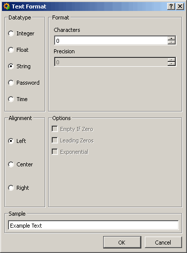 Format selector for selecting the format of your text (see also format string)