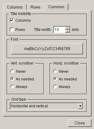 - Grid type: Combo box from which you can select whether a grid should be used for the cells. You can select one of the following options: "None" (No grid), "Vertical", "Horizontal" and "Horizontal and Vertical".
