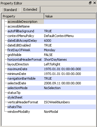 When the extended property dateEditenabled(bool) is set to TRUE, pressing an alphanumeric key will causes a date edit to popup for 1,5 seconds (dateEditAcceptDelay default setting) if the calendar widget has focus. Using the keyboard you can enter a new date in this edit in the form specified by the current locale. With the extended property dateEditAcceptDelay(int) you can specify the amount of time (in millseconds) that the date edit remains open after the most recent user input. Once this time has elapsed, the date specified in the date edit is accepted and the popup is closed.