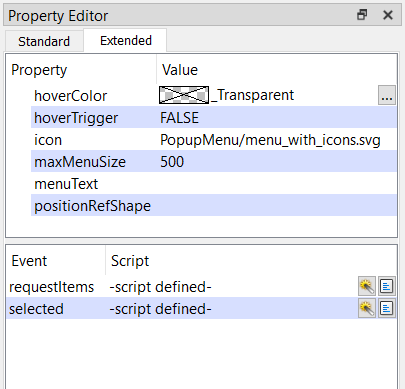 - positionRefShape - If a shape name is set, the popup menu will be opened at the position of the specified shape.
