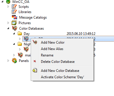 Click on the folder "Day" and add a new color database. Repeat this step for the "Night" folder (see figure above).