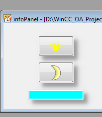 Add two buttons and a text field to the panel. In this example images were used for the buttons to illustrate the day/night switch.