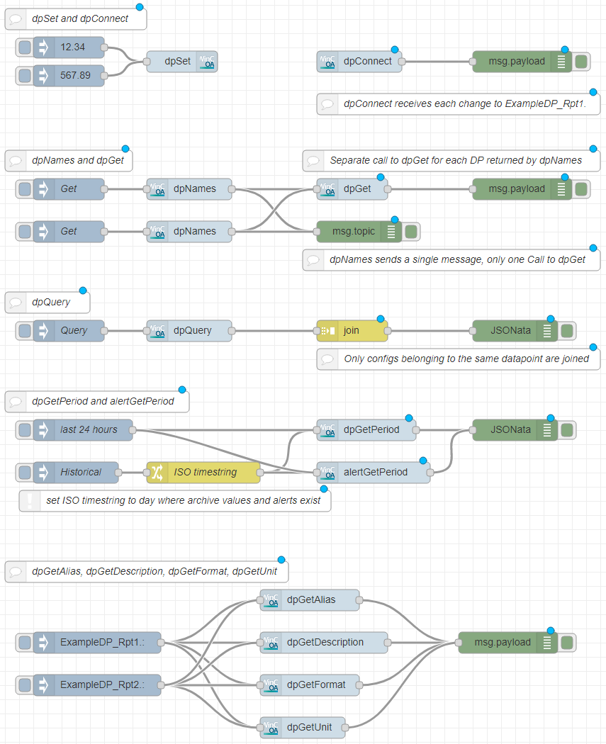 WinCC OA provides 7 Example Flows that showcase the use of the WinCC OA Nodes: