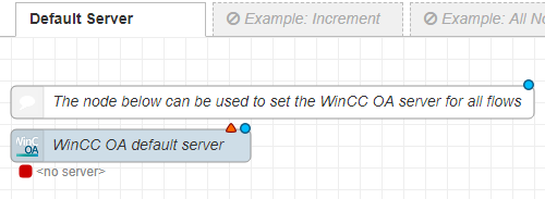 The Default Server Example is not strictly an example flow, but defines a WinCC OA Global Server to be used within all example flows. This server should be configured to simplify the work with the example flows.