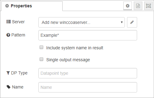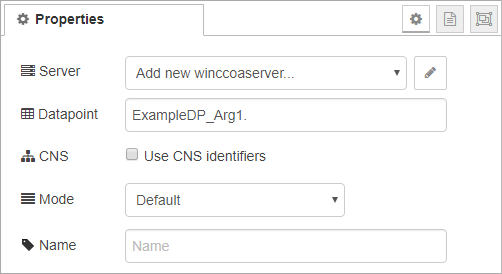 Most nodes can specify the datapoints or datapoint elements they are connected with. If the server is connected to a WinCC OA system you can use the auto-complete.