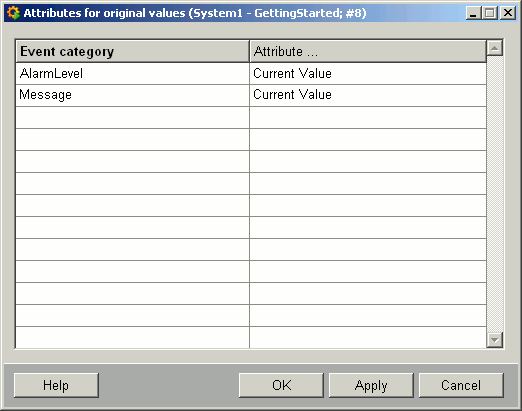 In case of a category of type simple event, this setting is ignored since an alert text is always shown in the original value (see config entry [opcae_<servername>] simpleEventDp of the OPC A&E client). In case of a subscription ALL_<Server name> (see next section), this setting is also ignored and thus no attributes are requested.