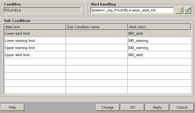 If you do not want to use the alert text for the Sub Condition name, you can change it by clicking on the Change button in the Sub Conditions panel.