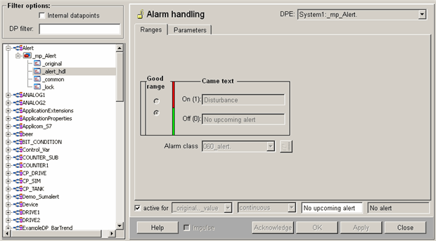 Figure 2. Alert handling for the master datapoint _mp_Alert