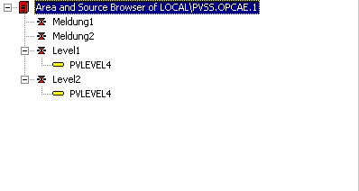 Choose the datapoints Level1 and Level2 for the datapoint group OPC_AE_PVLEVEL4.