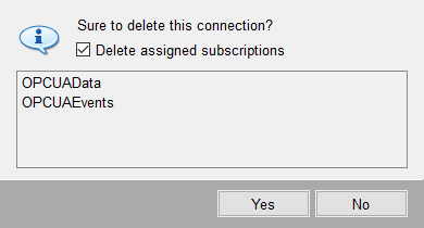 Existing subscriptions can be kept when removing a connection (see figure below) to be reassigned to a new connection (see Configuration of a Subscription).