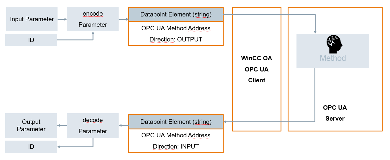 The WinCC OA client supports the usage of OPC UA methods. It can be used to establish in- and outbound communication with OPC UA server methods via data point elements.